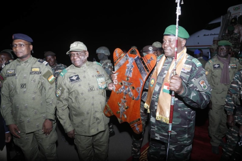 Dès les premières minutes suivant l’atterrissage de l’avion présidentiel à l’aéroport international Diori Hamani, l’ambiance donnait le ton. Le Président Tiani, accueilli par le Premier ministre, plusieurs membres du gouvernement, ainsi que les autorités de la région et de la Ville de Niamey, a été salué par une animation culturelle et des délégations sociales venues lui souhaiter la bienvenue. Le Gouverneur de Niamey et l’Administrateur délégué de la Ville lui ont remis des cadeaux symboliques, geste de courtoisie marquant la fin d’un périple aussi long qu’intense.