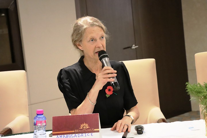 Après la présentation de l’approche nationale par le RAES, Catherine Inglehearn, ambassadrice du Royaume-Uni au Niger, a pris la parole pour réaffirmer l’engagement du Royaume-Uni dans le programme WISH2. Elle a salué « le leadership du Ministère de la Santé et de l’Hygiène Publique » et remercié MSI Niger, RAES et l’ensemble des partenaires du consortium WISH2.