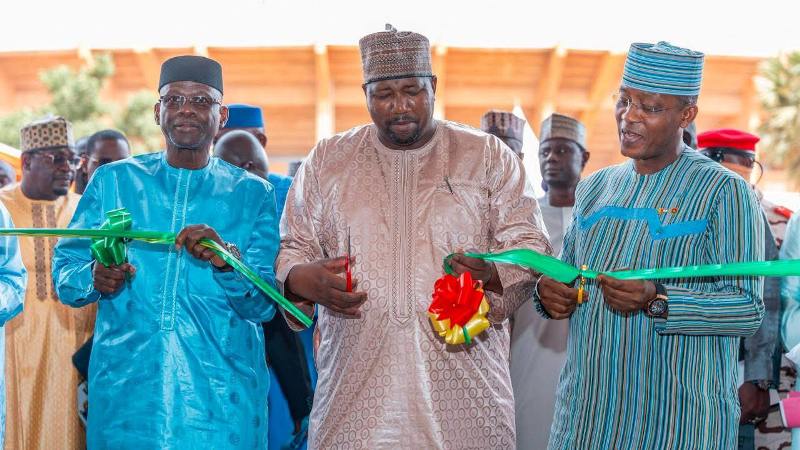 Après le discours de lancement officiel prononcé par le ministre nigérien du Commerce et de l’Industrie, Abdoulaye Seydou, au nom du Président de la République et du gouvernement, les trois ministres en charge du Commerce et de l’Industrie du Niger, du Burkina Faso et du Mali, accompagnés des officiels et des membres des délégations, ont procédé à la coupure du ruban, marquant officiellement le démarrage de cette première édition de la Foire de la Confédération des États du Sahel.