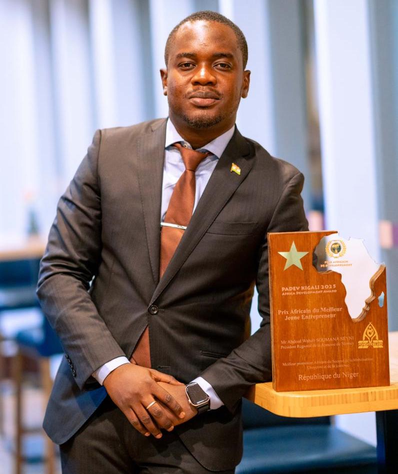 Dans un Niger en pleine transformation, une nouvelle génération s’impose sans fracas mais avec détermination : elle ne réclame pas sa place, elle la construit. Parmi ses visages les plus marquants, celui d’Abdoul Wahab Soumana, jeune leader citoyen, acteur institutionnel et mobilisateur discret, vient d’être projeté sur la scène continentale. Le 16 novembre 2025, à Kigali, il a reçu le Grand Prix Africain de l’Excellence et du Mérite des PADEV Awards. Une consécration africaine qui couronne un parcours forgé dans l’engagement, la rigueur et le service.